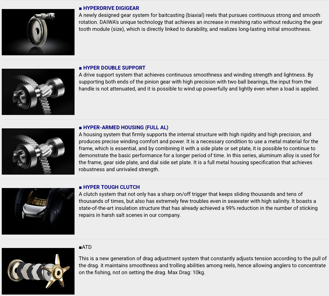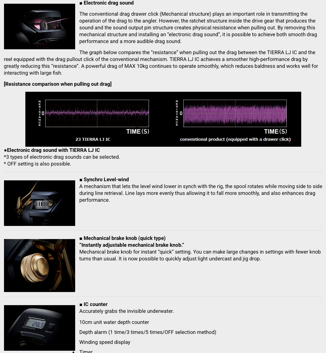 ATD, Synchro Level Wind и „Electronic Drag Sound“, която е първата, оборудвана с ръчно навита IC макара, правят това възможно. „Electronic Drag Sound“ е функция, която разпознава въртенето на макарата и предава работата на плъзгача с „електронен звук“.