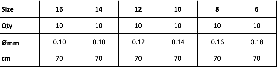 This coars fishing selection includes our Diamond series hooks snelled with nylon line from 0.10mm to 0.26mm. All rigs measure 70cm in length and come equipped with a loop to provide an easy connection with the main line. Featuring the Sode Diamond, this rig was developed to target roach, bream and crucian carp. It comes in three different color combinations: white, red and gold.