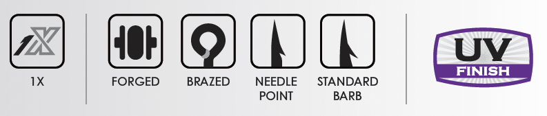 Art. # 694178095982UV-coated BKK Spear 21 treble hooks with ultra-sharp points, high strength, and enhanced visibility to trigger more aggressive strikes.