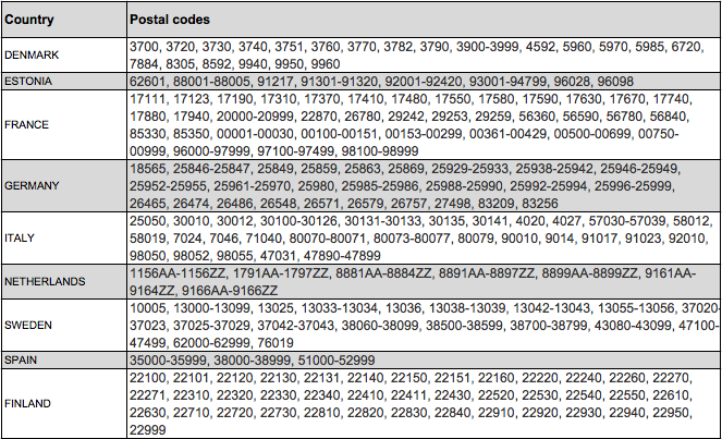 *** For the indicated postal codes, please contact our team at [email protected] before ordering. Delivery check is required.***