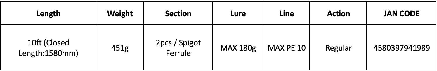 | Lure test (g) | MAX 180 |