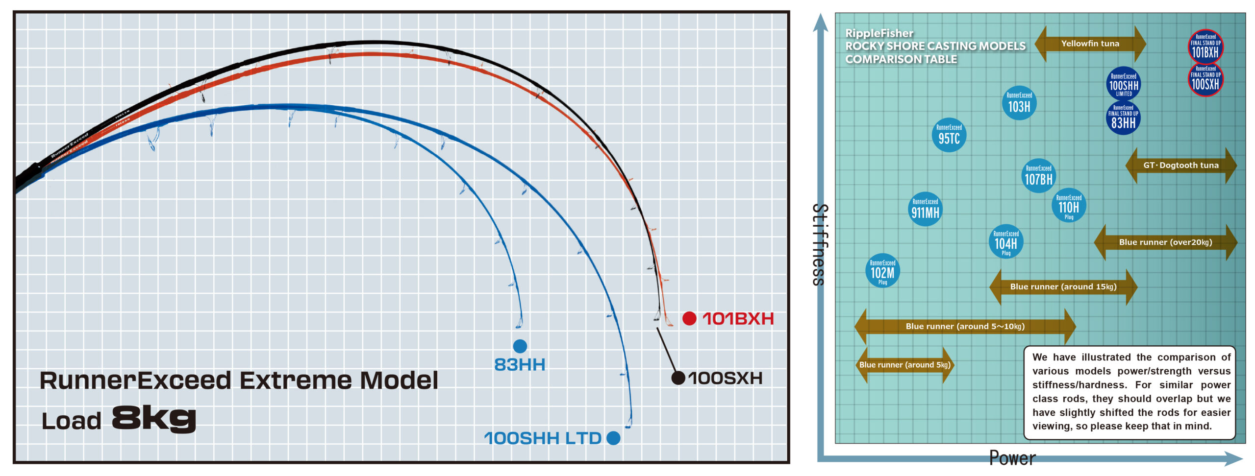 In 2025, the two core models of FINAL-STAND-UP will be reborn. The 100SXH and 101BXH, which have been perfected through numerous field tests, have the most power in the Runner Exceed series while refining their light usability. The 83HH takes advantage of the short length to enhance the power fight and the usability of the large plug, making it effective in specific situations. The 100SHH-LIMITED is a highly versatile model among the EXTREME-MODELS, with the blank designed with a special carbon configuration. The rod is highly resilient and has an exceptionally light user feel. These four models in the lineup are Ripple Fisher's EXTREME-MODELS, which were created for anglers who like to challenge their limits. They will show their true potential at the most extreme conditions against unimaginable monsters in the field.
