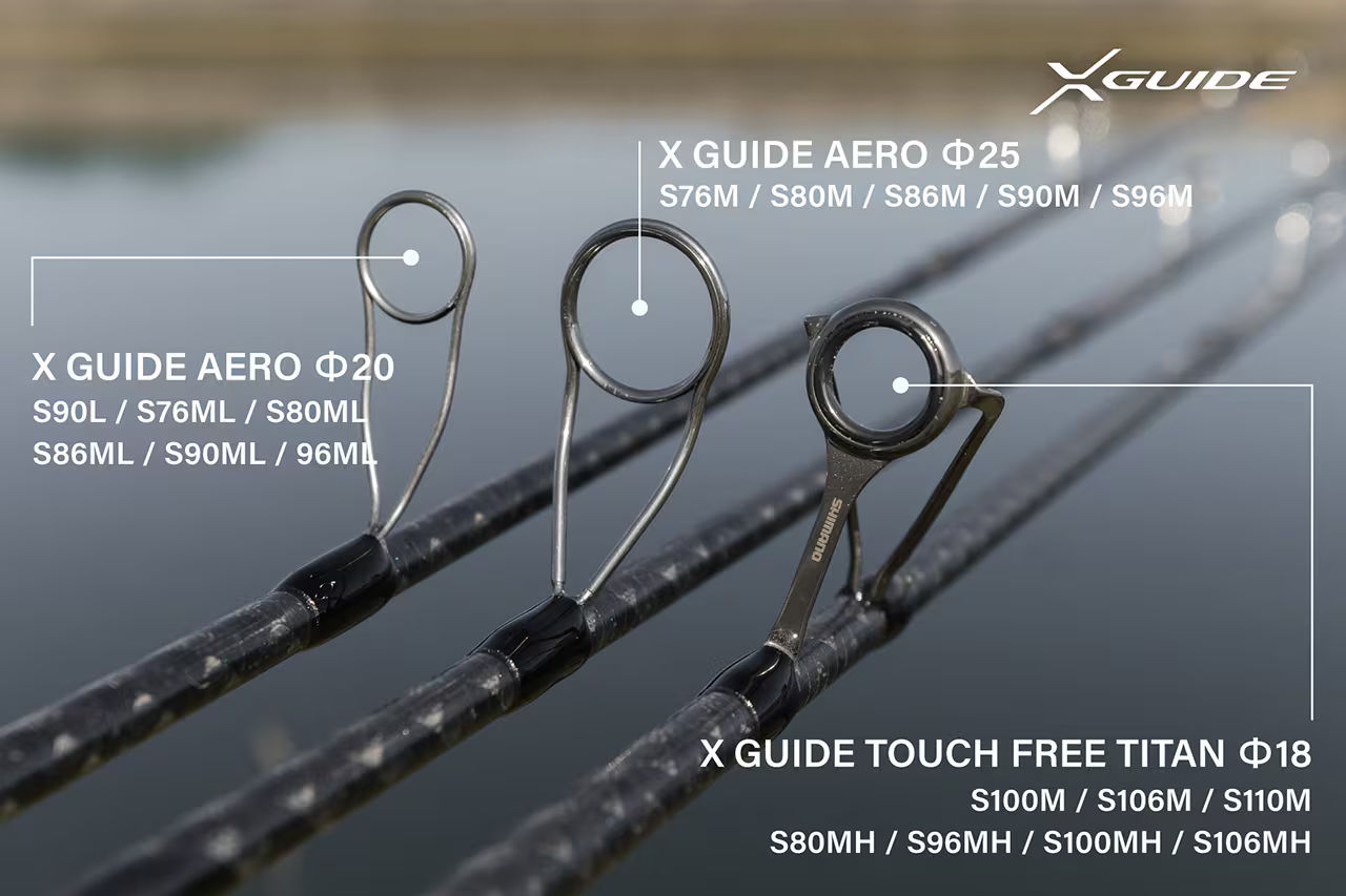 The spinning model guide system is equipped with an optimized [X Guide] for each model. In the L-ML class technical model, the [X Guide Aero] is downsized to achieve weight reduction and lightness. Operability and casting performance when using light lines have been improved. For models that are expected to be used in a versatile time, we use the original [X Guide Aero], which is both light and light. On the other hand, [X Guide Touch Free Titanium] is used for items that are expected to be high loads, and it combines stable casting and operability even with thick PE lines, contributing to reducing line problems.