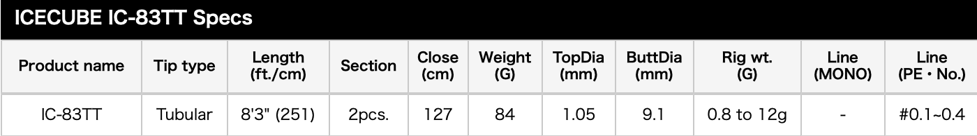 Art. # 4988540223522TICT Icecube IC-83TT-Sis delivers exceptional casting distance, precision control, and high sensitivity for advanced light game fishing.