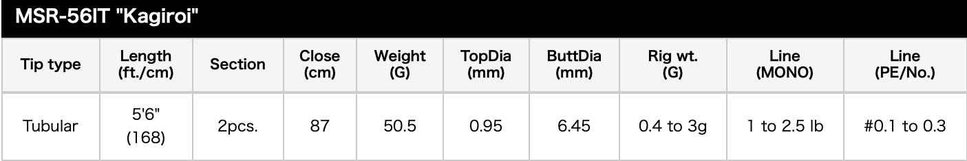Art. # 4988540223461Ultra-sensitive and powerful, the TICT SRAM MSR-56IT Kagiroi delivers precision control and brute strength for targeting large, hard-fighting fish.