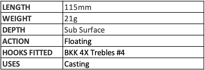 MAVERICK 115mm е уникална плаваща примамка, повърхностен уокър и попер в една примамка. Има толкова много начини да използвате тази уникална примамка, че ви препоръчваме да разгледате нашия уебсайт, за да видите гамата от различни начини за риболов. Може да се използва с дълго бавно издърпване като примамка за плуване с мехурчеста пътека, да се върти по повърхността, да се използва като примамка за walk the dog и да се използва като фин попър. Най-добре е, когато се работи бавно и има огромно колебание и търкаляне при много бавни скорости. Идеален за всякакви хищни риби, които могат да бъдат уловени на повърхностна примамка, и с разнообразието от извличания е супер забавен за риболов. Камерите с мехурчета отстрани добавят турбуленция при извличане, добавяйки към вече динамичното действие.